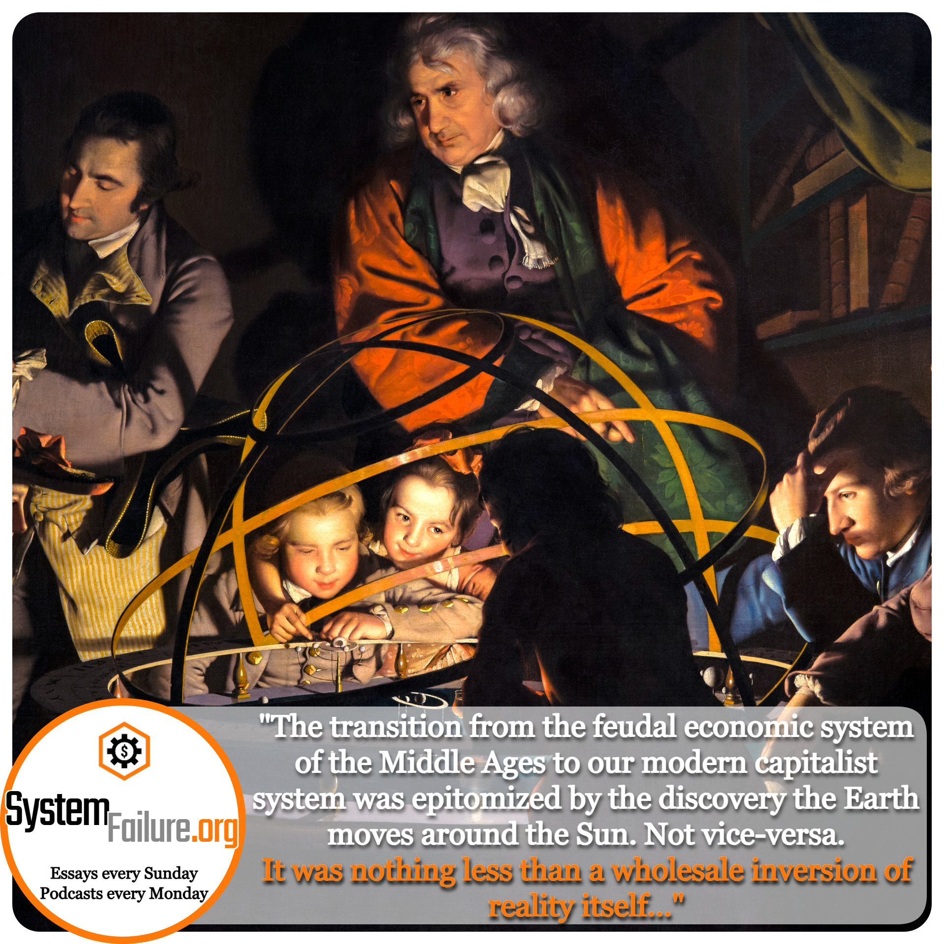 SYSTEM FAILURE is an adventurous romp through the history of Western Civilization. This annual rotation of 52 weekly newsletters argues that ruling class authorities define REALITY for working classes. And that when economic systems collapse, popular conceptions of reality also come crashing down.