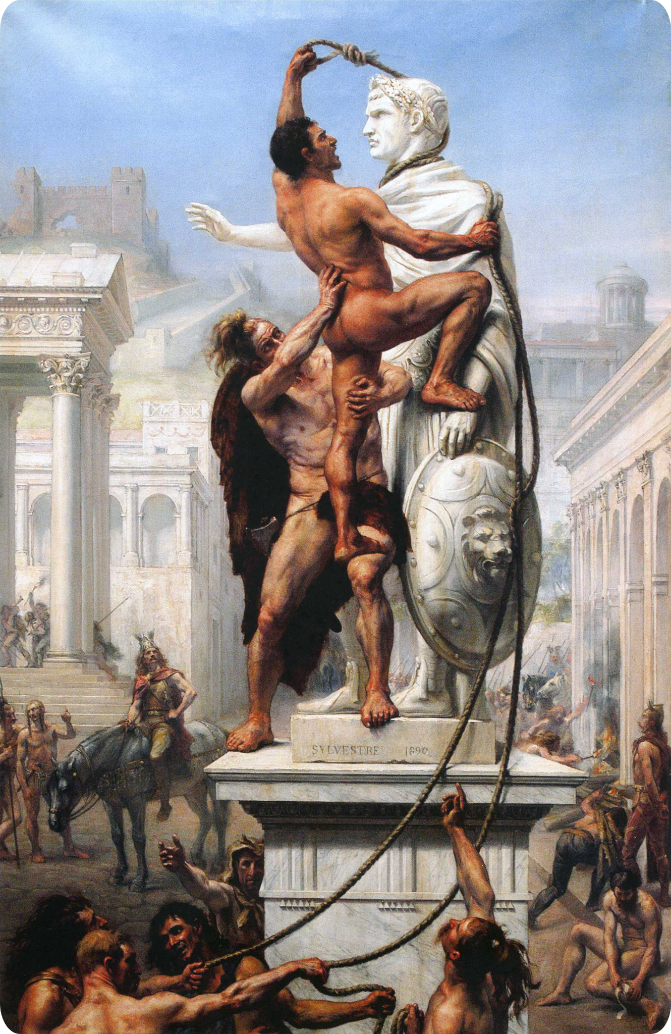 After the small farmers of Rome had been displaced by slaves, they lost any incentive to fight for a society in which they no longer had a stake. Military recruitment became a problem that the aristocracy solved by hiring foreign mercenaries, like Alaric the Visigoth. But those mercenaries eventually betrayed their masters. Alaric sacked Rome in 410 AD, and Roman civilization soon thereafter vanished from the Italian peninsula.
