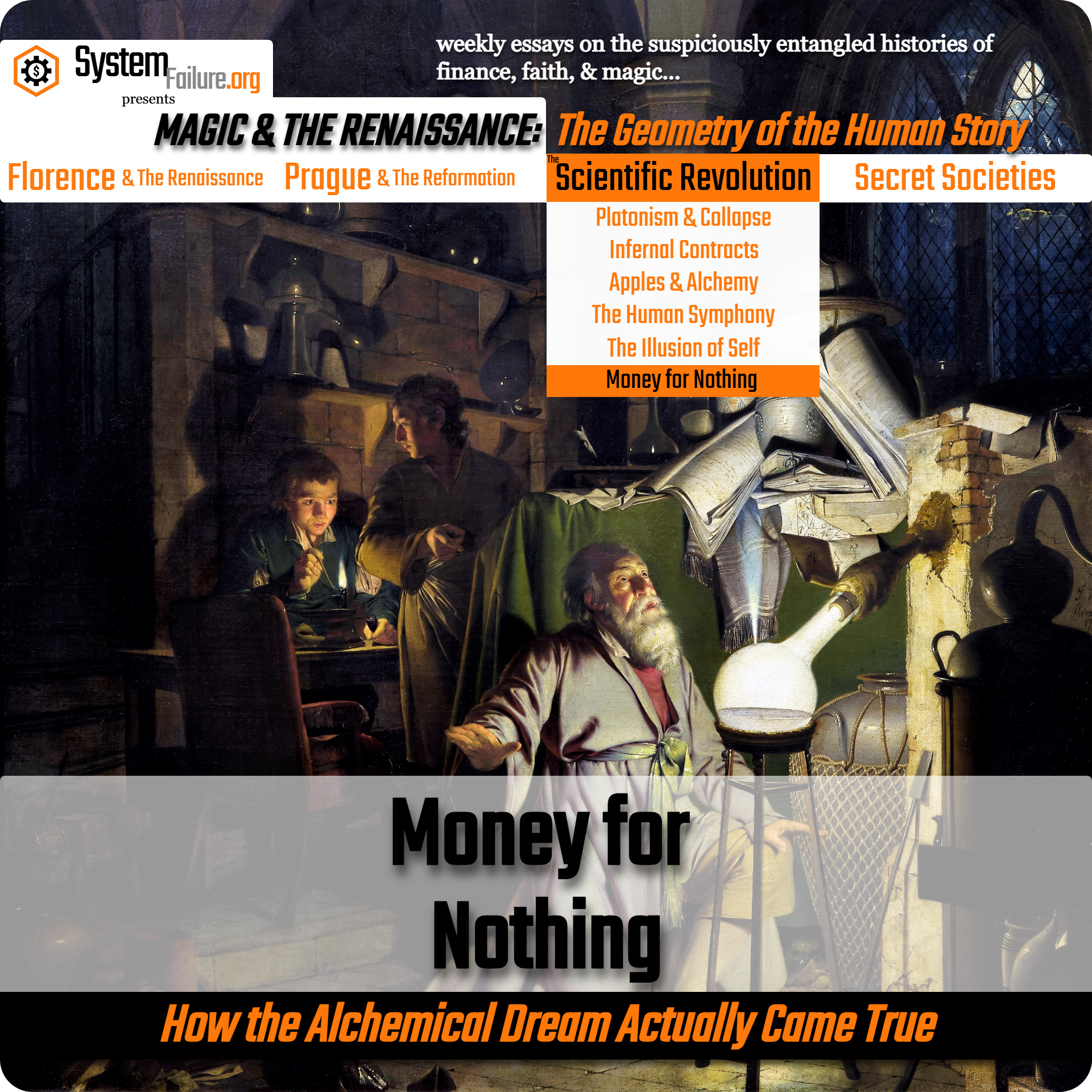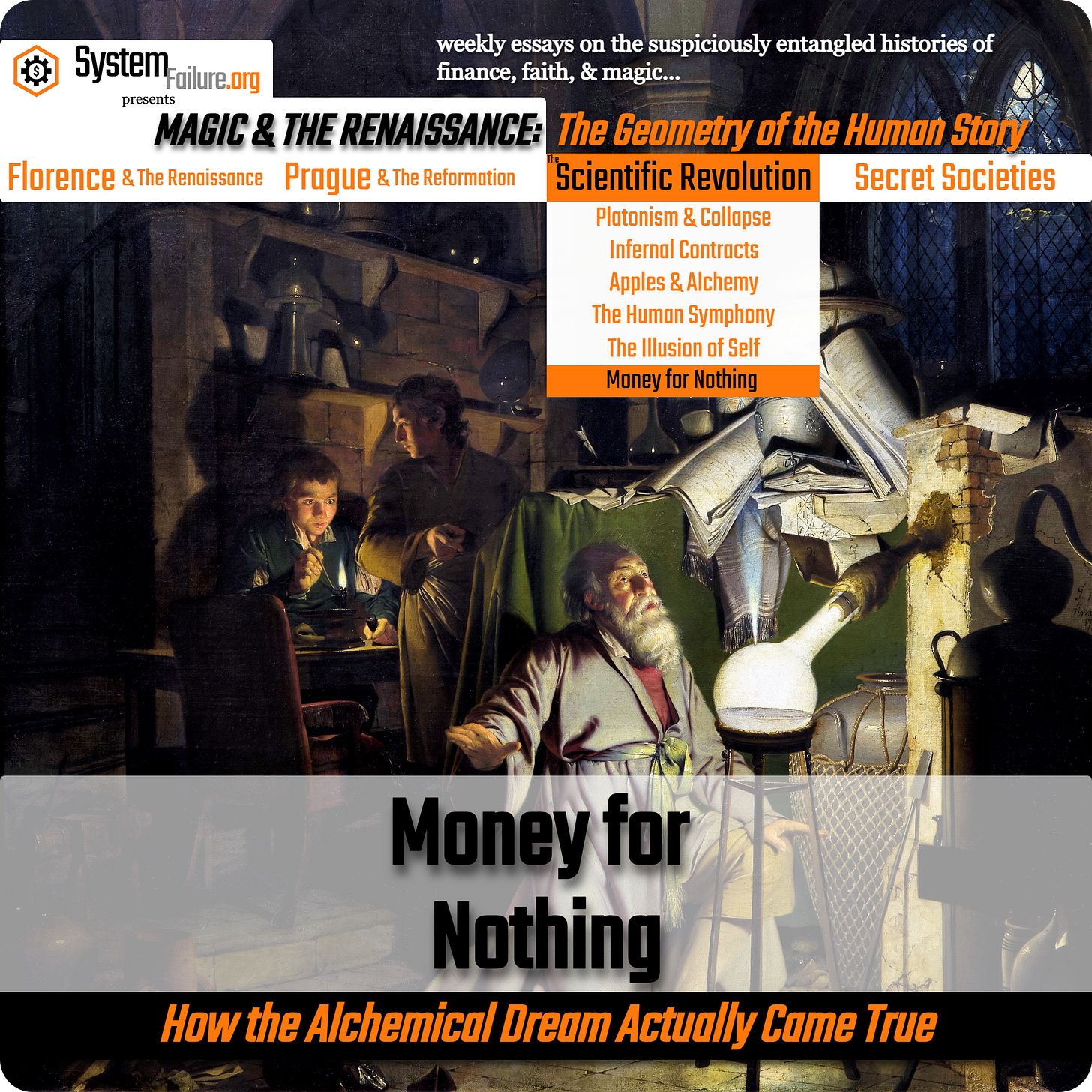 In 1771, Joseph Wright of Derby painted The Alchemist Discovering Phosphorus. His work serves as the Title Card for this essay; it portrays the deep relationship between alchemy and modern sciences like chemistry. The bankers of 17th-century England were not alchemists, but their fulfillment of the alchemical dream by creating money from nothing was deeply indebted to science.