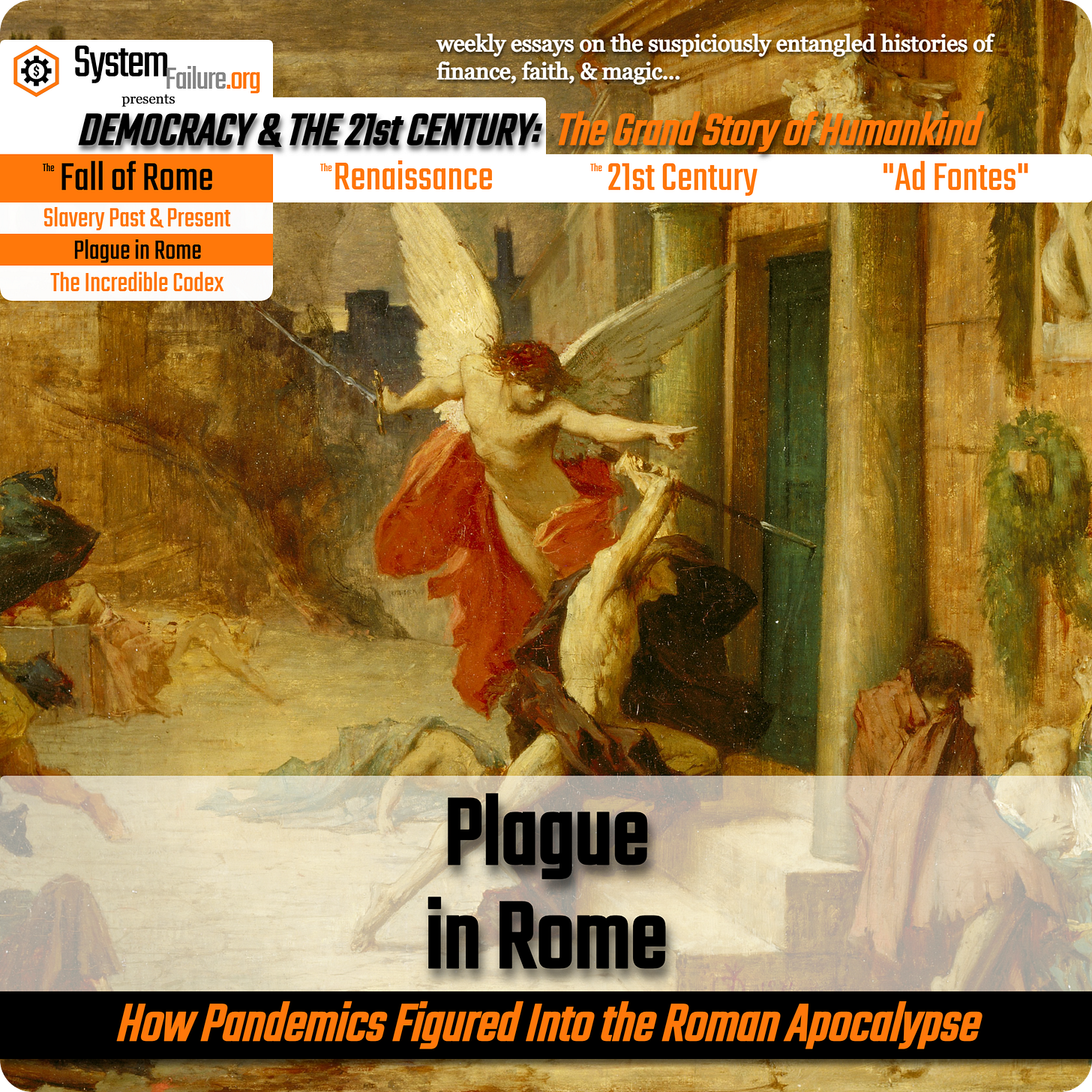Like late-stage capitalism and the late Middle Ages, the Fall of Rome was also haunted by the specter of the Fourth Horseman. The Roman Empire suffered two catastrophic plagues, approximately 100 years apart, which caused much of the massive loss of life and economic turmoil that characterized its fall.